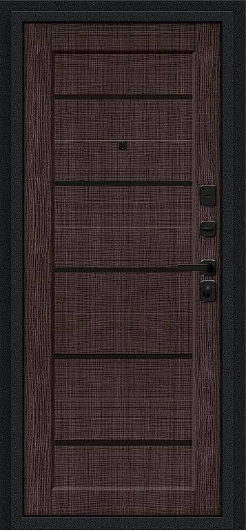 Надежная входная Дверь Браво Борн/SBlack Букле черное/Wenge Melinga премиум класса по цене 34 400 руб. Большая толщина стали защитит от проникновения в ваш дом, квартиру или коттедж. Используется очень качественная фурнитура: замки, цилиндры, ручки, защелки. Покрытие и отделка двери изготовлено под внимательным контролем производителя. Дверь имеет долгий срок службы и гарантию.
