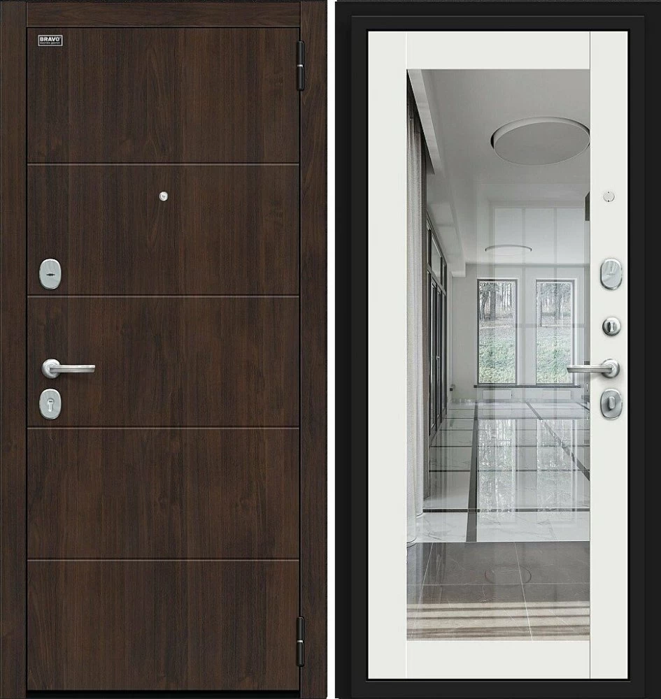 Надежная входная Дверь Браво Флэт Kale Almon/Off-white премиум класса по цене 42 600 руб. Большая толщина стали защитит от проникновения в ваш дом, квартиру или коттедж. Используется очень качественная фурнитура: замки, цилиндры, ручки, защелки. Покрытие и отделка двери изготовлено под внимательным контролем производителя. Дверь имеет долгий срок службы и гарантию.