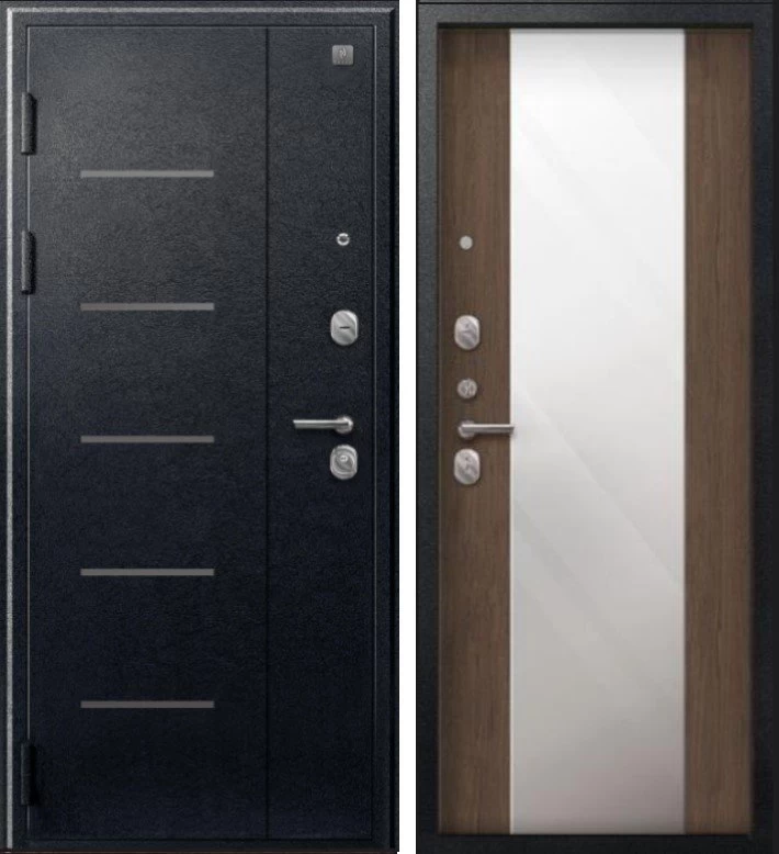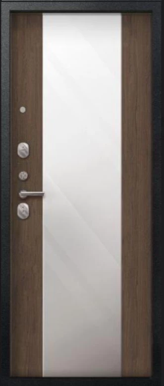 Надежная входная Дверь V-04 Черный муар - Миндаль Зеркало премиум класса по цене 46 000 руб. Большая толщина стали защитит от проникновения в ваш дом, квартиру или коттедж. Используется очень качественная фурнитура: замки, цилиндры, ручки, защелки. Покрытие и отделка двери изготовлено под внимательным контролем производителя. Дверь имеет долгий срок службы и гарантию.