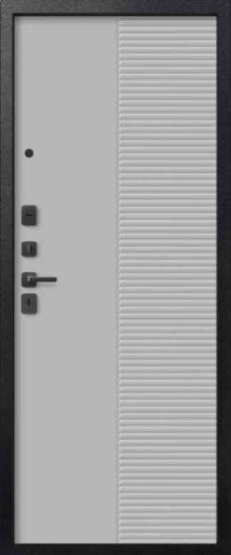 Надежная входная Дверь V-18 Черный муар + Кашемир графит - Кашемир сильвер премиум класса по цене 47 550 руб. Большая толщина стали защитит от проникновения в ваш дом, квартиру или коттедж. Используется очень качественная фурнитура: замки, цилиндры, ручки, защелки. Покрытие и отделка двери изготовлено под внимательным контролем производителя. Дверь имеет долгий срок службы и гарантию.